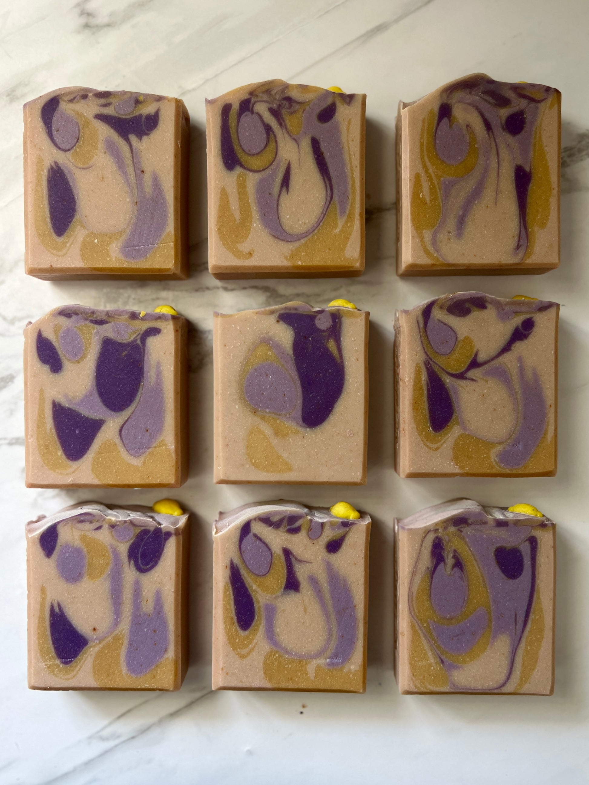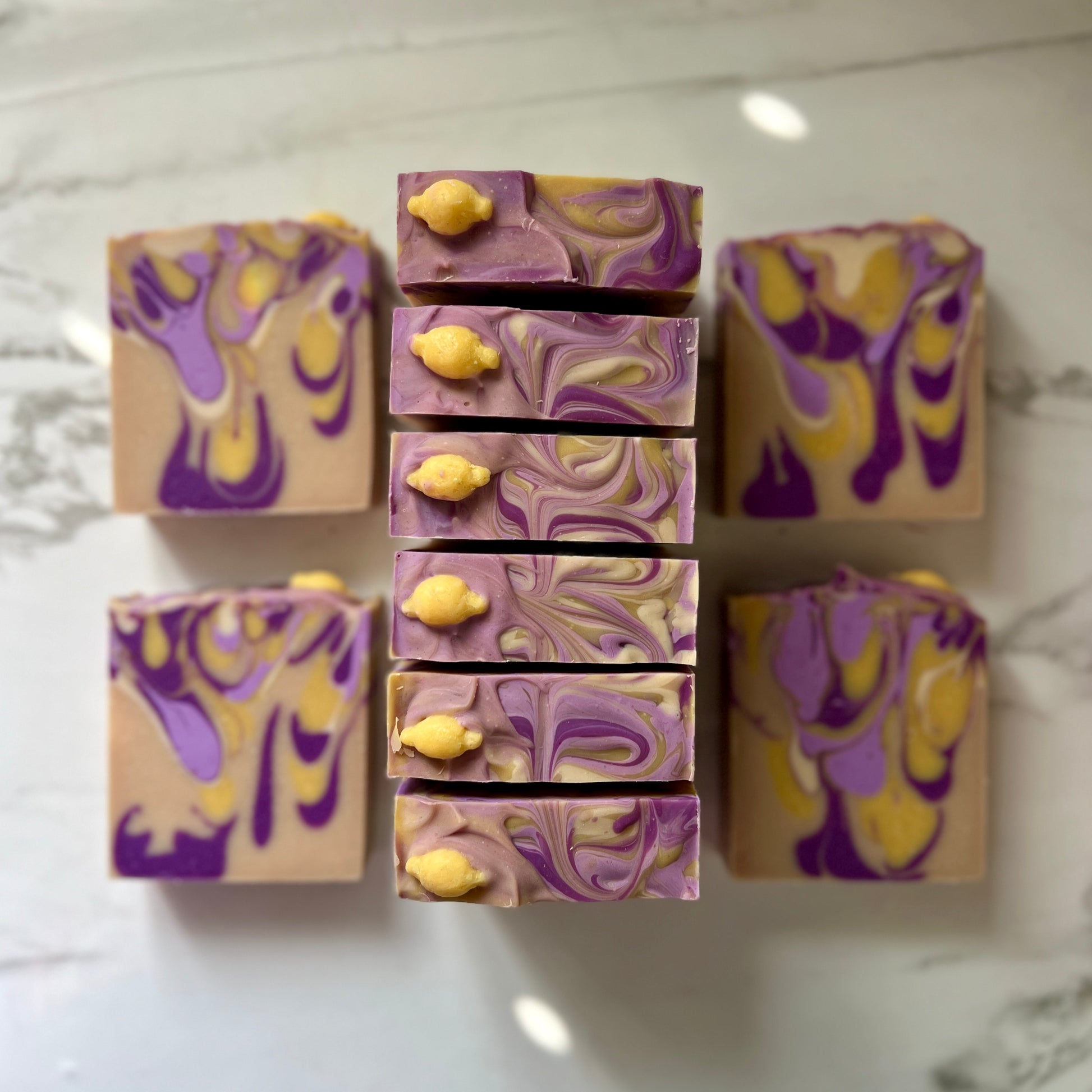 Ingredients: lard, olive oil, coconut oil, grapeseed oil, castor oil, distilled water, sodium hydroxide, goats milk, fragrance, colloidal oats, citric acid, mica colorants, titanium dioxide
